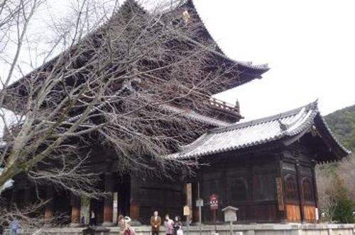 娘と二人旅となった二日目。 地下鉄で蹴上(けあげ)まで行き、南禅寺へと向かいました。 なんと小雪まじりで有名な門の上にはうっすらと白いものがあります。 素敵に見えるように写真を撮るように頼んで、娘が選んだのがこのアングルでした。 なかなかいい…