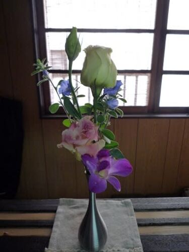 ピンクとイエローのグラデーションが美しい 八重のトルコキキョウです。 最近はトルコキキョウが一番好きです。 なんとも優美でしょう。 上の方の薄黄色も色づくかしら。