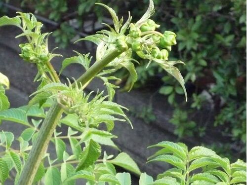 つぼみがはっきりわかるようになりましたが、 まだ咲いてはいません。 どんどん伸びて今は5mぐらいの高さになっています。 二階の手すりの高さを越えました。
