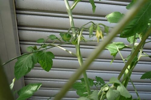 ミニトマトの苗が余っているというので、 買って植えたら、ぐんぐん伸びて、ちょっと邪魔。 でも、ちっちゃな実が。