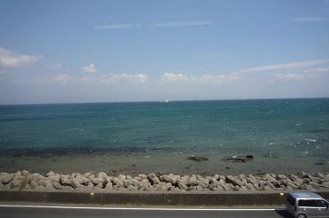 2012-03-30 鹿児島の旅 -鹿児島湾(錦江湾)ー おでかけ 鹿児島中央駅から薩摩半島を指宿(いぶすき)に向かう『NANOHANA』なのはな号から見えた景色です。 遮(さえぎ)るもののない青い海が広がっていました。 左手にはうっすら佐多岬のある大隅(おおすみ)半島が見えます。 宮ヶ浜で降り、『こらんの湯 錦江楼』に泊まります。