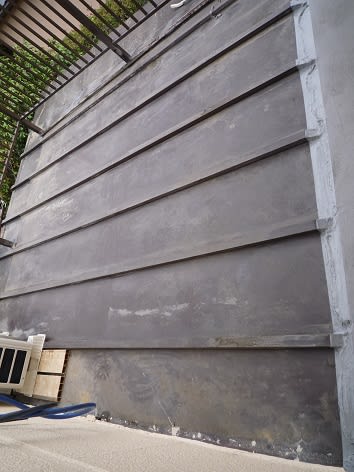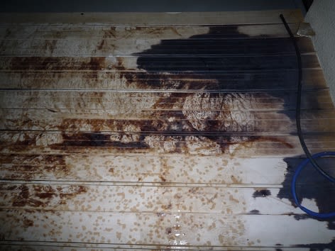 2015-06-30 ベランダの塗装汚れをどうする① 耐震リフォーム ベランダについてしまった気持ち悪い模様。 日焼けの黒い色が溶けだしたようになってしまって。 何をしても取れず、交換することに。 初めにデッキを取り換えたいと言った時に、 これははずせないと言っていたのに、はずせるらしいです。 下の屋根も塗れました。 防水屋さんの作業は以前に終わってしまってるので、 防水部分との取り合いはコーキングします。 瓦棒も塗装しました。 でも、実は塗れてない部分があったんです